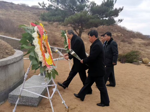 驻清津总领事金燕光参加总领馆祭扫稳城郡中国人民志愿军烈士陵墓活动