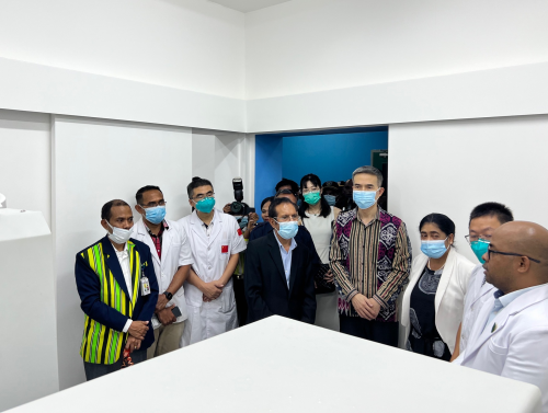 仪式后,在东卫生部长陪同下,肖大使和鲁瓦克总理一同参观了医院碎石机、核磁共振等机房及设备运行情况。