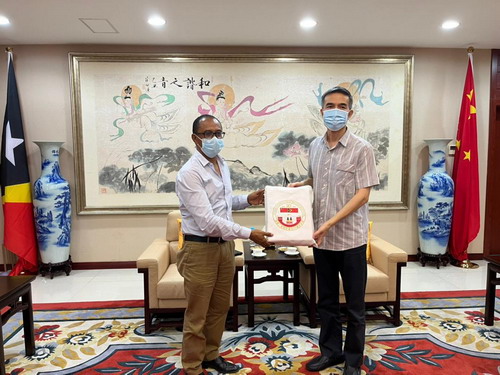 2022年10月7日,驻东帝汶大使肖建国会见东帝汶前外长、东国立大学教授巴博,双方就中东双边关系和地区形势等交换意见。
