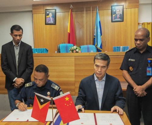 2022年10月28日,驻东帝汶使馆援助东帝汶国民警局警用物资交接仪式在帝力警察总部举行。驻东帝汶大使肖建国、东国民警察司令福斯蒂诺、东内政部办公室主任平托及驻东国防武官刘淼大校等出席。