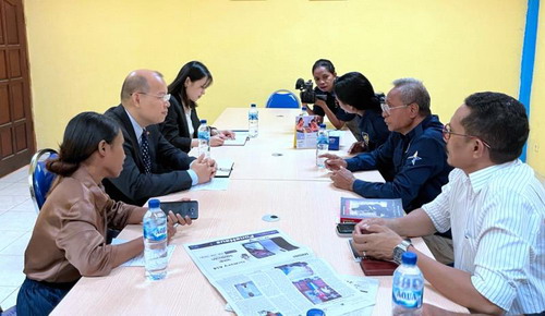 2023年4月25日,驻东帝汶使馆临时代办徐丹阳访问东发行量最大的报纸《东帝汶之声》总部,会见该报业总裁西蒙斯,了解该报发展历史、运营状况,介绍中国式现代化理念主要内涵以及中方支持中东人文、媒体交流的设想。