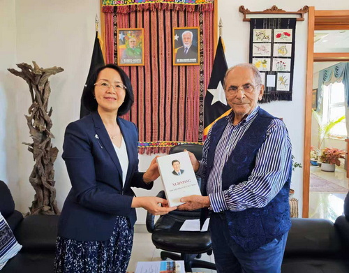 2025年12月17日,驻东帝汶大使王文丽拜会东帝汶总统奥尔塔,面交习近平主席致奥尔塔总统的生日贺信,转达习近平主席对奥尔塔总统的生日祝福,表示愿与东方一道,深化各领域合作,共同推动两国关系发展。