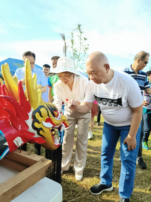 次日,赵总领事应邀参加该市第二届国际龙舟赛开幕式,同黄市长共同为龙舟“点睛”。