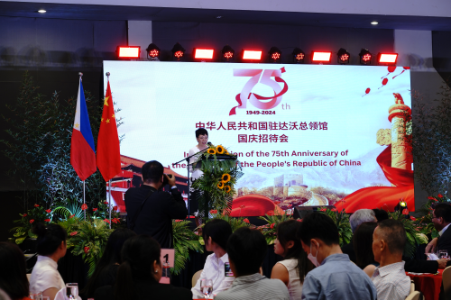 2024年9月16日,驻达沃总领馆举行庆祝中华人民共和国成立75周年招待会,驻达沃总领事赵秀珍出席招待会。达沃市长塞·杜特尔特派副市长出席并致辞,菲律宾众议员安阿布、菲中了解协会主席兰比诺、菲副总统达沃市办公室主任及部分省市负责人、政府各部门达沃区代表、达沃领团、华社、中企和孔院代表等300余人出席。