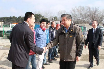 2015年2月23日,驻格鲁吉亚大使岳斌赴中水电十六局第比利斯至鲁斯塔维公路建设项目部,向春节期间战斗在工作一线的企业员工致以节日的亲切问候和良好祝愿。