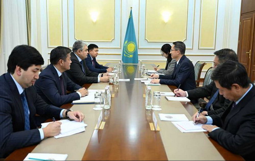 2025年10月1日,驻哈萨克斯坦大使韩春霖拜会哈萨克斯坦外长科舍尔巴耶夫。