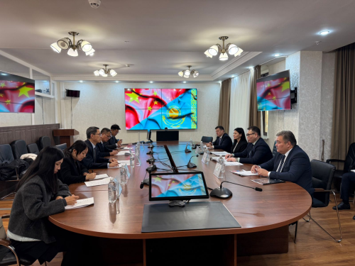 2025年10月16日,驻哈萨克斯坦大使韩春霖拜会哈贸易和一体化部长沙卡利耶夫。
