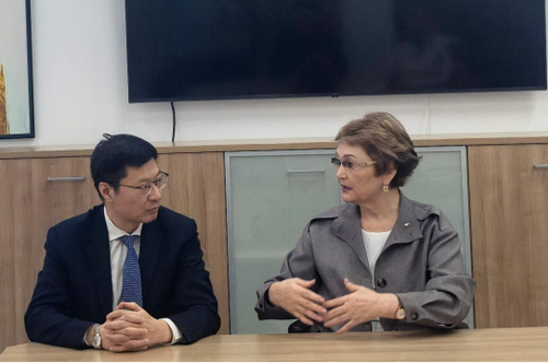 拜梅诺娃介绍中心工作,感谢总领馆对残疾人事业的关心和支持,表示愿进一步加强同总领馆交流合作。