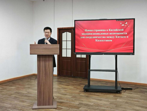 2025年11月19日,驻阿克托别总领事郭宇赴朱巴诺夫大学宣介党的二十届四中全会精神,胡塞伊诺夫副校长及该校师生代表等约80人参加。