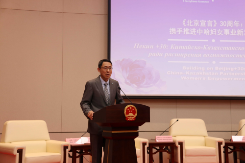 2025年11月27日,驻哈萨克斯坦使馆同联合国妇女署驻哈代表处共同举办“《北京宣言》30周年:携手推进中哈妇女事业发展新进程”研讨会。驻哈萨克斯坦大使韩春霖和代表处主任古蕾斯及哈总统直属妇女家庭人口政策委员会秘书努拉赫梅托娃出席并致辞。哈政府、智库、高校、媒体等领域妇女和青年代表约70人参加。