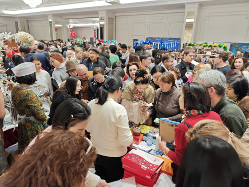 2025年12月7日,2025年驻哈使团慈善义卖活动在阿斯塔纳丽笙酒店举行。驻哈萨克斯坦大使韩春霖及使馆妇女小组参加。