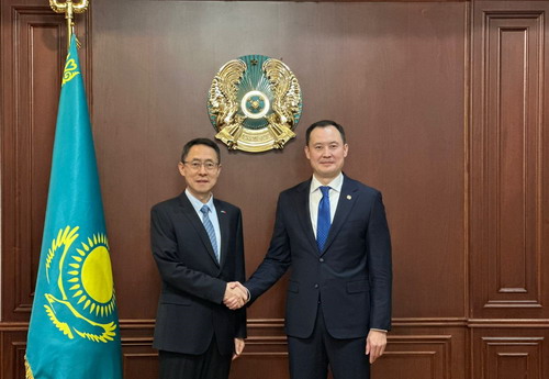 2025年12月9日,驻哈萨克斯坦大使韩春霖拜会哈萨克斯坦能源部副部长扎尔肯绍夫。