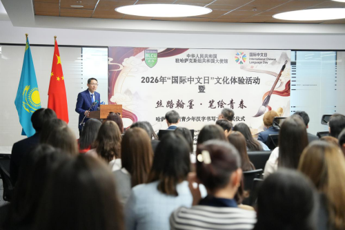2026年4月20日,驻哈萨克斯坦使馆与北京语言大学哈萨克斯坦分校在该校联合举办2026年“国际中文日”文化体验活动暨“丝路翰墨·笔绘青春”哈青少年汉字书写大赛颁奖仪式。驻哈萨克斯坦大使韩春霖和阿斯塔纳国际大学校长米尔扎加利耶娃出席并致辞,北京语言大学校长段鹏视频致辞。来自阿斯塔纳市及周边地区近200名哈青少年参加活动。