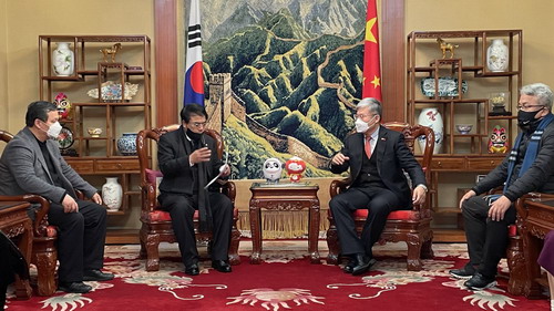 2022年1月26日,驻光州总领事张承刚会见韩中经济文化教育协会光州分会长李炅俌、全南分会长尹永锡、全北分会长李钟吾及协会成员代表。