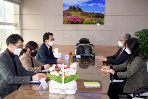 2022年3月25日,驻光州总领事张承刚会见光州广域市新任主管行政事务的副市长文永训,国际协力担当官室李荣喆系长等参加。