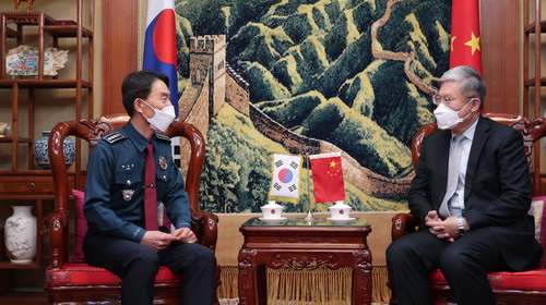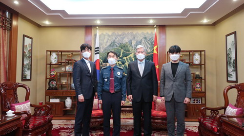2022年4月6日,驻光州总领事张承刚在馆内会见光州南部警察署长梁又天,朴勇哲外事系长等陪同参加。