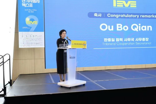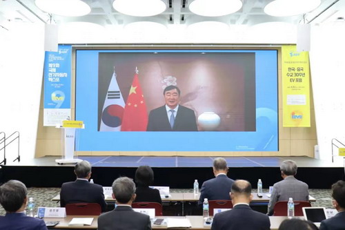 2022年5月5日,由韩国国际电动汽车博览会组织委员会和驻济州总领事馆共同主办的庆祝中韩建交30周年“中韩电动汽车产业发展合作特别论坛”在韩国济州道西归浦国际会展中心举行。驻韩国大使邢海明、中日韩合作秘书处秘书长欧渤芊、驻济州总领事王鲁新、中国电动汽车百人会常务副秘书长刘小诗、韩国国际电动汽车博览会顾问姜太善和组织委员长金大焕等出席并致辞,中韩两国电动汽车领域有关部门、团体、企业和专家学者50余人以线上和线下方式出席。