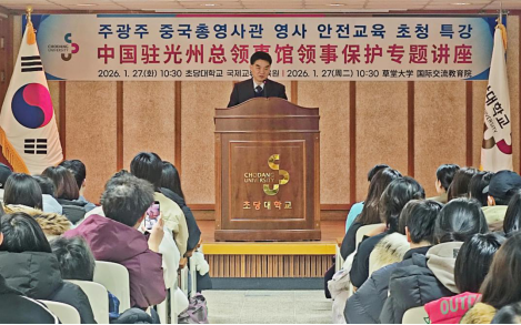 当日,顾总领事看望了在当地研学的100余名中国学生,鼓励学生们了解当地社情民意,展现中国青年风采。驻光州总领馆领侨处工作人员还结合当地情况作了领保专题讲座。