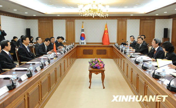 2009年12月17日下午,正在韩国访问的国家副主席习近平在首尔同韩国总理郑云灿举行会谈,双方就进一步深化中韩战略合作伙伴关系达成广泛共识。