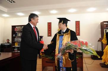 演讲前,比什凯克人文大学举行仪式,授予王开文大使该校“名誉教授”称号。