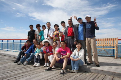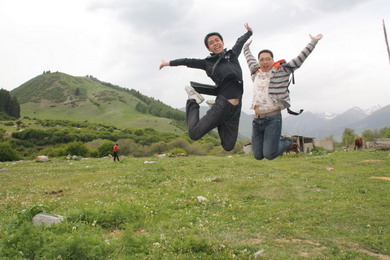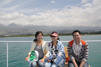 一行人先乘艇游湖。在浩荡的水面上,极目远望,一面是水天相接,三面是绿岸雪山,美丽的自然使人陶醉,令人忘我。之后,大家来到深山峡谷,喝过山民送的马奶酒,品尝当地特有的高山羊肉,在牛畜成群、鸟语花香的山谷中留留影、撒撒欢,感到心情无比愉悦。此时此刻,每个人的身心得到彻底放松,平日工作的疲劳和紧张也抛到了九霄云外。大家在自然中欢笑和嬉闹,全无往日的刻板和拘束,增进了彼此的和谐与友谊。