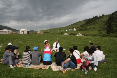 举办业务知识讲座,提高青年外交官业务水平,也是这次学习考察活动的主要内容之一。青年读书会特别邀请了驻吉大使王开文和夫人谷平、使馆商务参赞金玉龙、研究室主任吕毅为大家作专题讲座,内容包括驻外青年外交官如何做好本职工作,如何培养外交官的风度和素养以及调研基础知识介绍等。课堂设在美丽的大自然中,在绿树成荫的湖畔,在青山绿水的峡谷,大家席地而座,聆听资深外交官语重心长地述说。说者知无不言,言无不尽;听者全神贯注,皆有领悟。这次在伊塞克湖地区举办的讲座收到令人意想不到的良好效果。