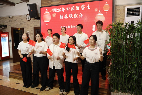 联谊会气氛热烈,掌声不断。学生代表表演了《幸福中国一起走》、《灯火里的中国》、《沙漠胡杨》、《彩云之南》等歌舞,寄托了海外游子的思乡之情和爱国之志。活动最后,使馆为师生们发放新春暖心包。