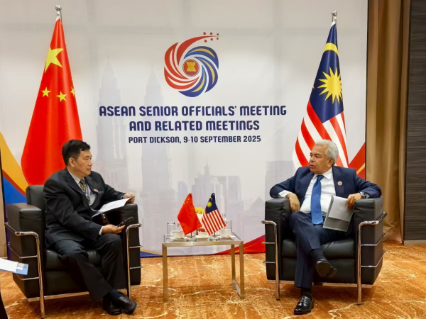 2025年9月9日,外交部亚洲事务特使邓锡军在马来西亚出席东亚合作系列高官会前,同泰国、柬埔寨,以及东盟轮值主席国马来西亚代表就柬泰边境冲突交换意见。