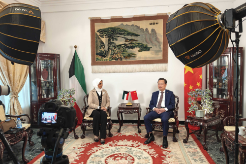 2023年12月12日,驻科威特大使张建卫接受科威特国家电视台“10分钟说外交”栏目专访,介绍中科关系、中国文旅资源及应对气候变化举措等情况。
