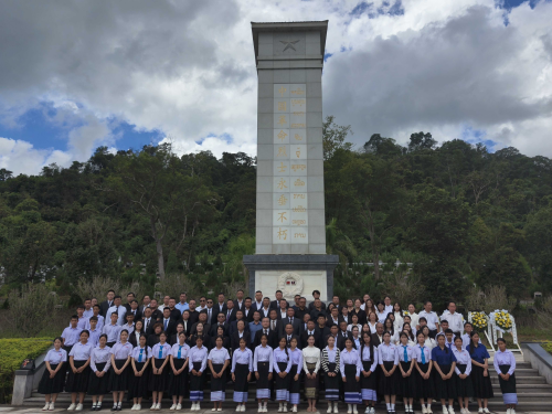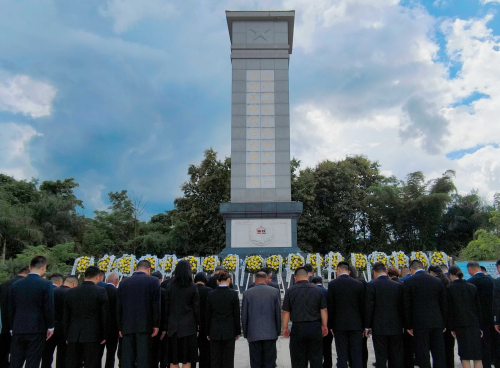 张社平总领事表示,60多年前,年轻的中国英雄们为支持老挝民族独立和人民解放而牺牲,他们的英名与日月同辉,中老两国人民永远铭记。中老两国人民在斗争中结下的革命友谊,跨越时空,正推动中老命运共同体建设蓬勃发展。