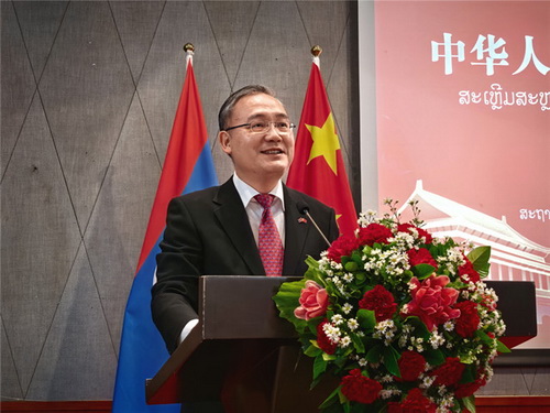 招待会气氛热烈友好。来宾盛赞中国发展成就,共贺中老友谊。