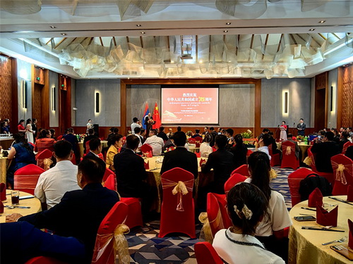 2025年9月25日,驻琅勃拉邦总领事张社平举行庆祝中华人民共和国成立76周年招待会。琅勃拉邦省委书记、省长坎康及老北六省负责人,越南驻琅代总领事阮仲奎,领区中资机构、华侨华人、志愿者教师代表等出席。