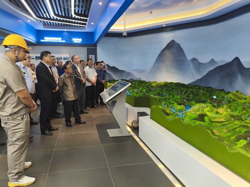 坎潘认真听取项目介绍,参观南欧江一级电站流域展厅、中控室、大坝和电力运维管理中心,了解项目解决当地就业、培养技术人才等情况,充分肯定项目产生的经济、社会、环境效益,称赞项目是老中友好合作的重要成果。
