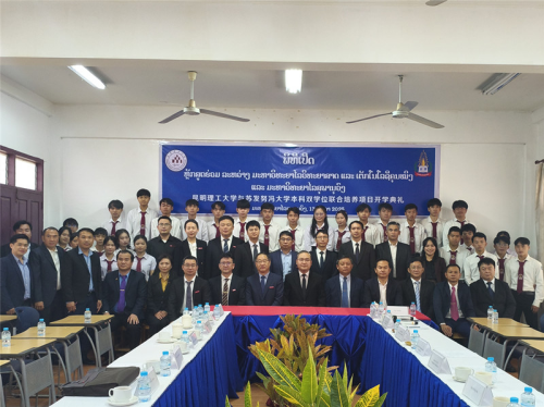 2025年12月13日,昆明理工大学与苏发努冯大学人工智能本科双学位联合培养项目开学典礼在琅勃拉邦举行,驻琅勃拉邦总领事张社平、苏发努冯大学校长维拉、昆明理工大学校领导及师生代表出席。