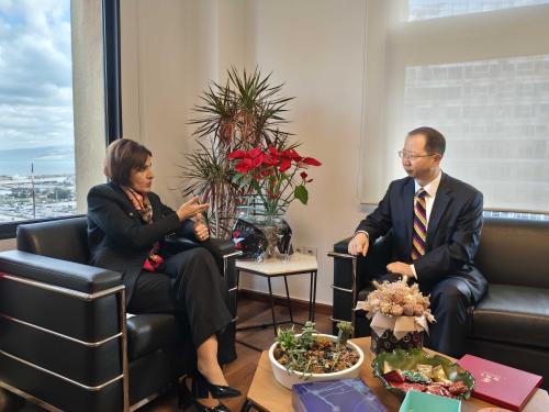 2026年1月15日,驻黎巴嫩大使陈传东拜会黎环境部长塔玛拉·泽因。