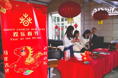 活动现场年味浓浓,嘉宾们体验了中餐、书法、剪纸等中华传统文化,并使用中文互致新春祝福。