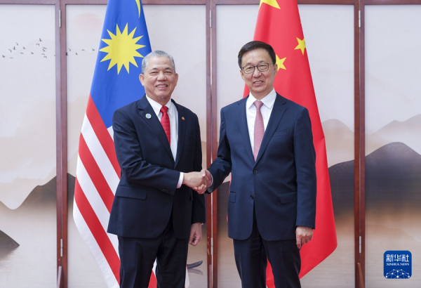 2025年9月17日,国家副主席韩正在广西南宁会见来华出席第22届中国—东盟博览会暨中国—东盟商务与投资峰会的马来西亚副总理兼能源及水务转型部部长法迪拉。