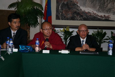 2017年8月15日,驻蒙古使馆、中国藏文化代表团在中国大使馆共同举行中蒙佛教交流座谈会。驻蒙古大使邢海明、中国藏学研究中心宗教所周炜所长、西藏自治区人民政府旦增伦珠副秘书长、索朗尼玛活佛以及来自蒙宗教、学术界的30余名代表参加。