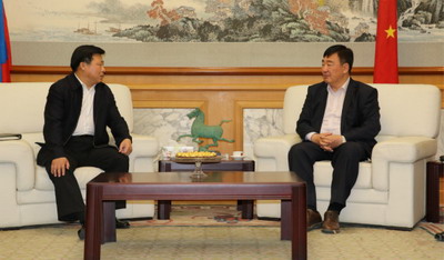 2018年6月4日,驻蒙古大使邢海明会见大庆油田海拉尔石油勘探开发指挥部新任指挥白振国、党委书记于洪波,就蒙古塔木察格油田经营发展交换意见。