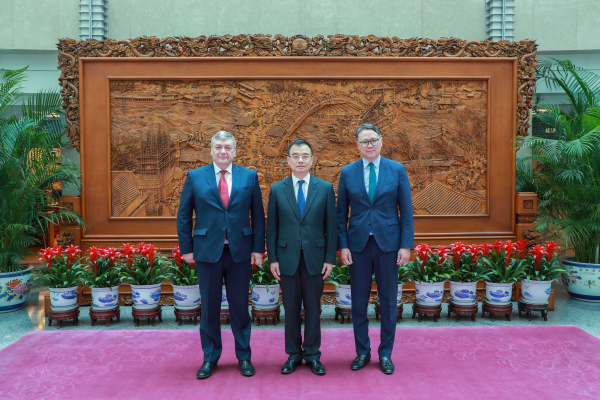 2025年5月29日,外交部部长助理刘彬同俄罗斯外交部副部长鲁登科、蒙古外交部国务秘书孟和图世格在北京举行中俄蒙三国副外长磋商。
