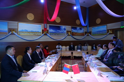13日上午,邢大使同戈壁阿尔泰省议长冈卓立格等省领导和省议会议员举行会晤。