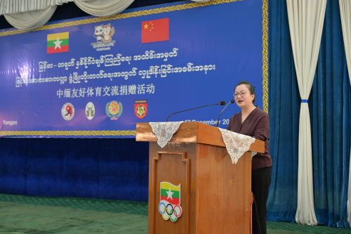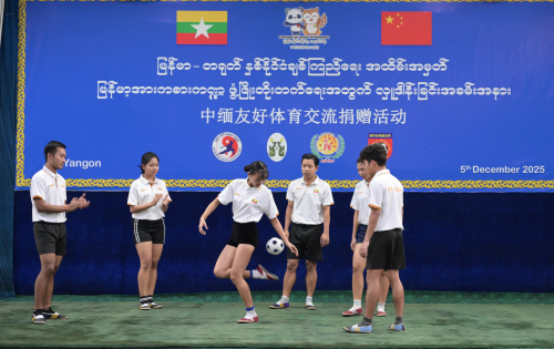 2025年12月5日,中缅友好体育交流捐赠活动在仰光体育运动学院举行。驻缅甸大使马珈、缅体育与青年事务部长杰鹏瑙当、仰光省首席部长梭登及缅武术、龙舟、足球、藤球协会代表和运动员400余人参加。