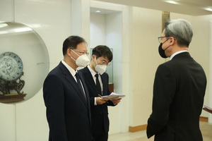 外交部副部长马朝旭、部长助理徐飞洪对前来吊唁的使节表示感谢。