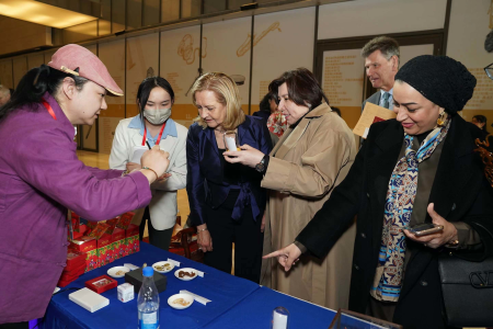 2023年3月14日,外交部与北京市人民政府外事办公室、西城区人民政府邀请驻华使节出席在北京天桥艺术中心举办的京剧国粹艺术赏析及非遗体验活动。老挝、缅甸、阿联酋、南非、土库曼斯坦、乌兹别克斯坦、捷克、奥地利、冰岛、乌拉圭、委内瑞拉等25位驻华大使、7位临时代办、5位国际组织驻华代表和其他34家驻华使馆(机构)代表近140名外交官参加。外交部部长助理华春莹出席并致辞。