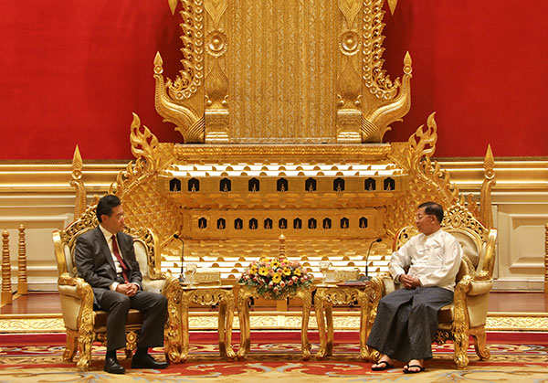 秦刚指出,中方真心希望缅甸局势稳定、国家发展,支持缅甸探索符合国情、具有缅甸特色的发展道路,支持缅方继续推进政治转型进程,支持缅各方在宪法和法律框架下妥处分歧、实现和解。中方主张国际社会尊重缅主权,为缅实现和平和解发挥建设性作用。中方将继续为缅发展提供力所能及的帮助,加快推进中缅经济走廊重点合作项目,开展农业、教育、医疗等惠民项目。