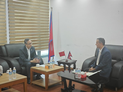2025年10月14日,驻尼泊尔大使陈松拜会尼泊尔临时政府内政部长阿亚尔。