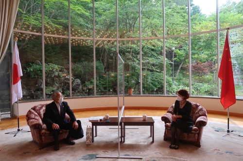 2022年8月22日,驻札幌总领事刘亚明会见旭川市日中友好协会会长鸣海良司。