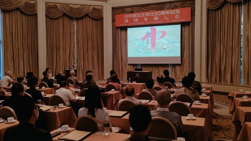 薛剑说,对中日而言,汉诗则是沟通彼此心灵的独特载体,更是双方共享的东方文化价值的重要象征,在2000多年的中日交流史上发挥了重要作用。自1500多年前传入日本以后,汉诗对日本文化社会发展产生了深远影响,日本汉诗名家辈出,汉诗文化经久不衰,李白、杜甫、王昌龄、白居易、苏轼等大诗人对日本人来说耳熟能详。1300多年前日本长屋亲王在赠送给唐朝高僧的袈裟上绣了“山川异域,风月同天”感动了鉴真东渡日本弘法。在2020年疫情初期同样的文字被日本友好人士贴在赠送给中国的防疫物资上,也深深感动了中国人民。日本许多地方有汉诗协会,开设汉诗讲堂、教室,日本学校教育也非常重视汉诗的学习。今年是中日邦交正常化50周年,希望大家通过今天的汉诗讲座,能够品味先贤佳作,以诗为媒,增进两国人民的相互理解和友好感情。
