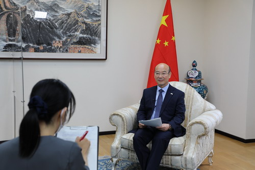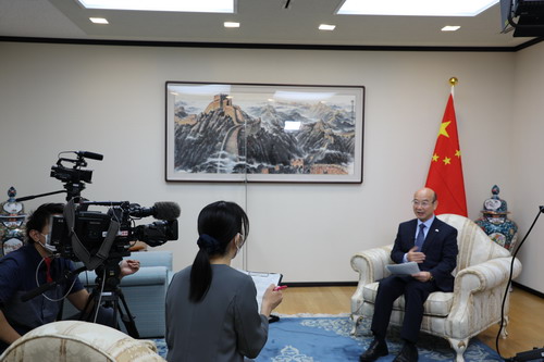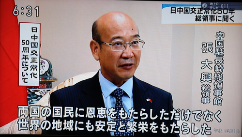 2022年9月1日,驻长崎总领事张大兴在馆内接受日本广播协会电视台专访,围绕纪念中日邦交正常化50周年、长崎与中国友好关系等方面回答记者提问。