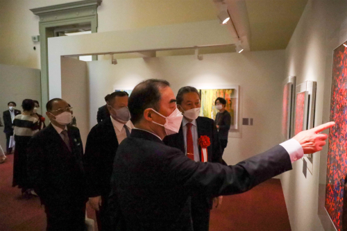 孔大使在致辞中表示,画家王传峰旅日30年来,一直致力于中日友好和文化交流事业,曾获得“中日友好使者”称号。其作品融合中日绘画特点,充分表现出对自然和生命的感悟,具有独特艺术风格,在中日艺术界广受赞誉。本月底将迎来中日邦交正常化50周年,希望双方把握这一重要时间节点,进一步发挥文化交流的桥梁和纽带作用,重温和平友好初心,推动构建契合新时代要求的中日关系,共同助力中日关系取得更成熟稳定、健康强韧的发展。